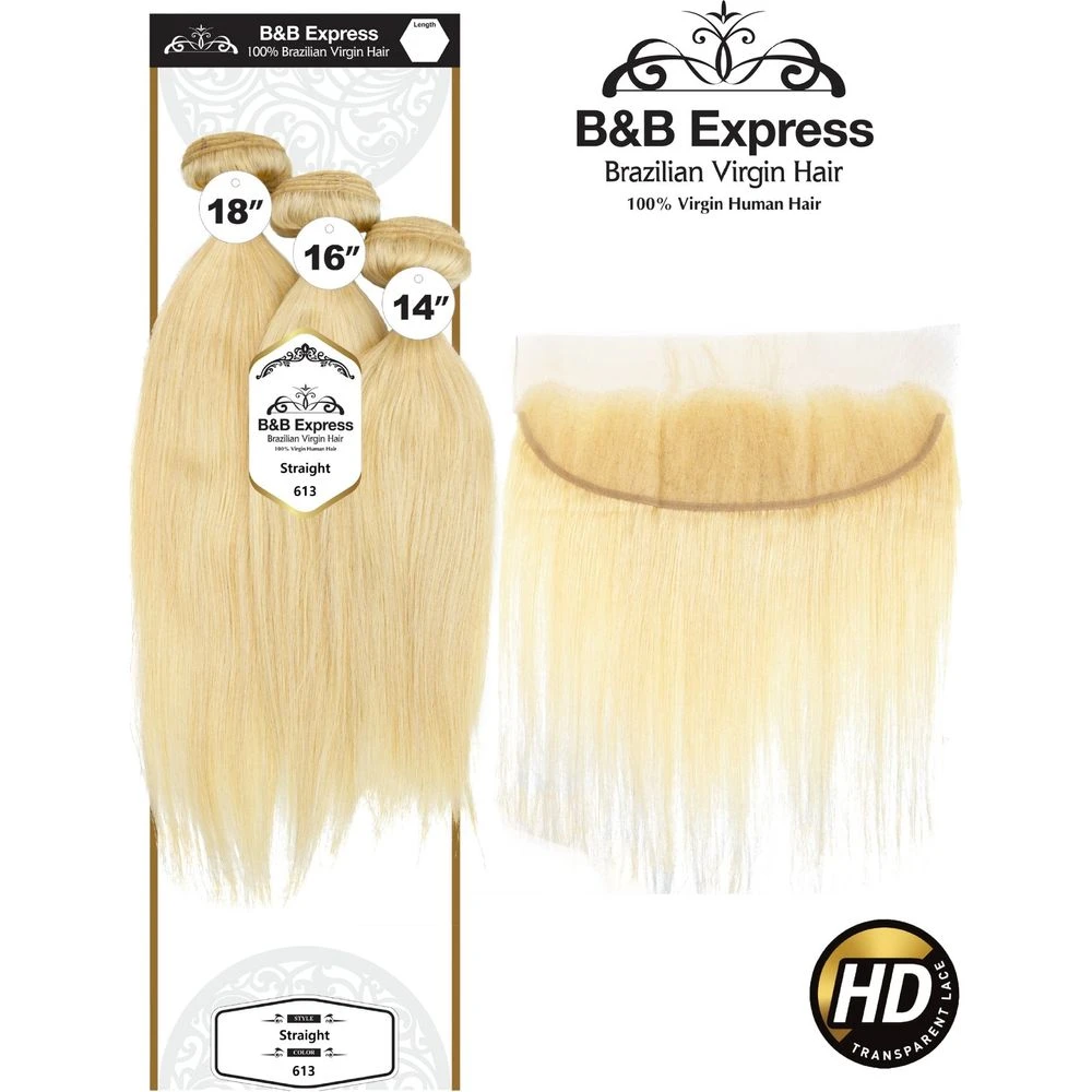 B & B Gold 100% Human Hair Bundles + 13×4 Lace Frontal – 613