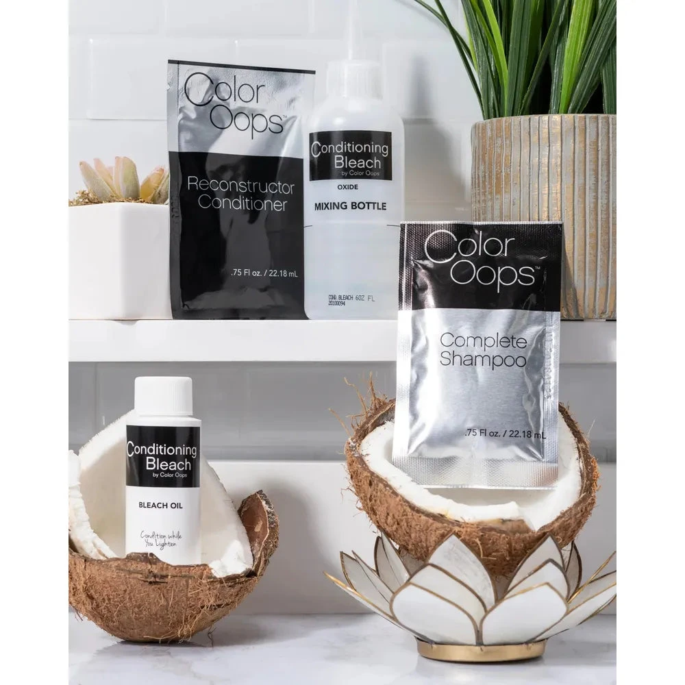 Looking for a lightening boost without the damage drama? Color Oops Conditioning Bleach is your go-to for lifting color safely and gently. Infused with nourishing coconut oil, this ammonia-free bleach kit lifts up to 3 levels while keeping hair soft, shiny, and protected.
