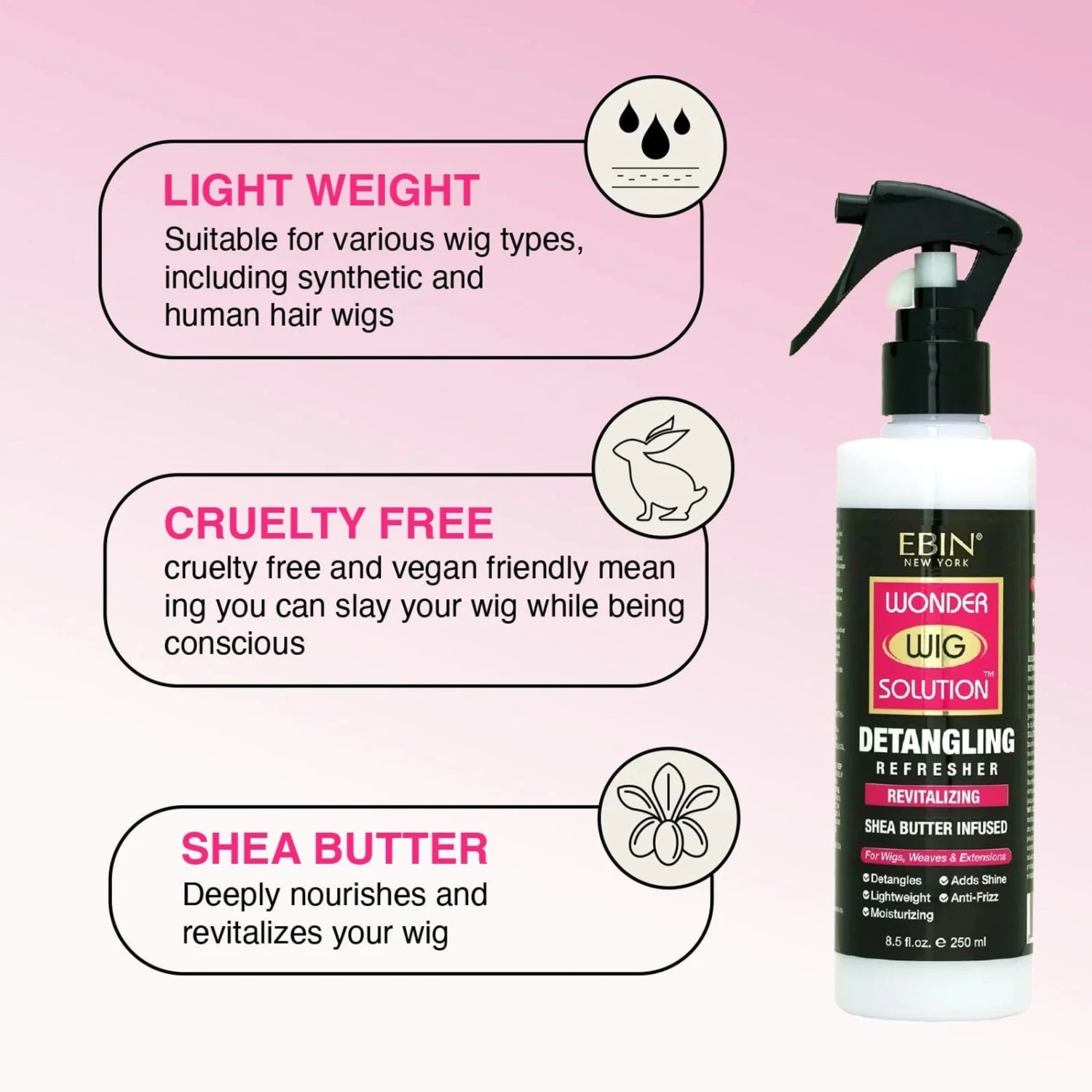 ✨ Give your wigs new life with EBIN’s Wonder Wig Solution Detangling Spray 💧. Designed to effortlessly detangle, soften fibers, and refresh synthetic or human hair wigs, it keeps your styles looking natural and feeling silky-smooth 💁🏽♀️💨.