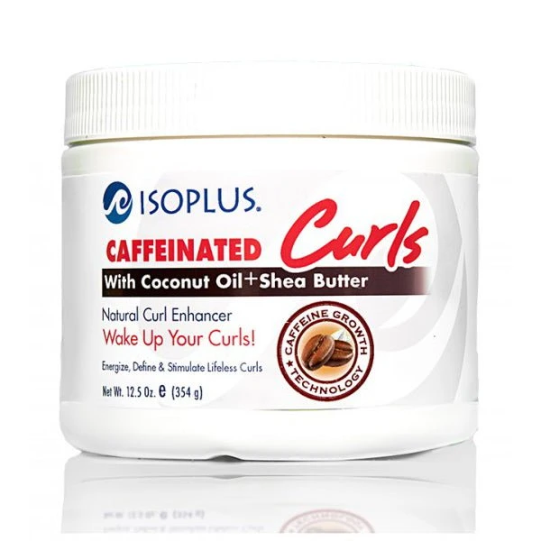 Isoplus Caffeinated Curls – Energize your curls! ☕ This curl-defining cream is infused with caffeine to help wake up your hair’s natural texture, delivering moisture, definition, and bounce in every use.