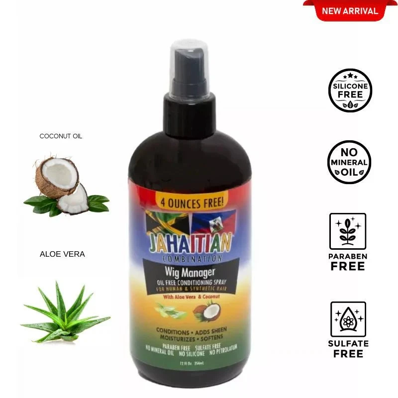 Refresh, hydrate, and slay your style with the Jahaitian Combination Wig Control Spray. Infused with aloe vera and coconut oil, this lightweight mist softens synthetic or natural hair fibers while helping to detangle, reduce frizz, and add lasting moisture.