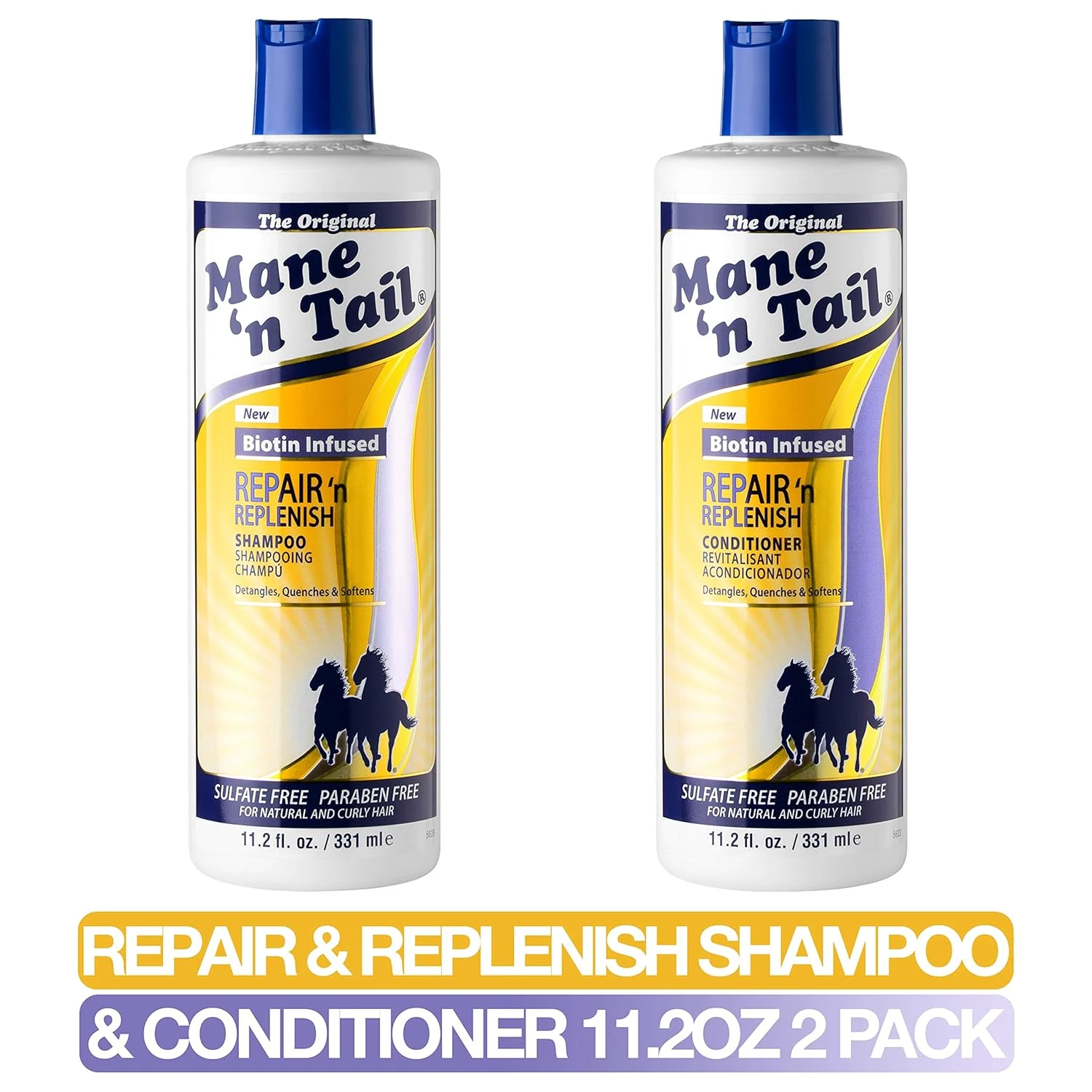 Revive your hair with Mane ’n Tail’s Sulfate-Free Repair ’n Replenish system. This gentle duo of Micellar Shampoo and Conditioner cleanses deeply while replenishing moisture and strengthening strands. Perfect for all hair types, it helps repair damage, reduce breakage, and leave hair soft, smooth, and healthy-looking without harsh sulfates.