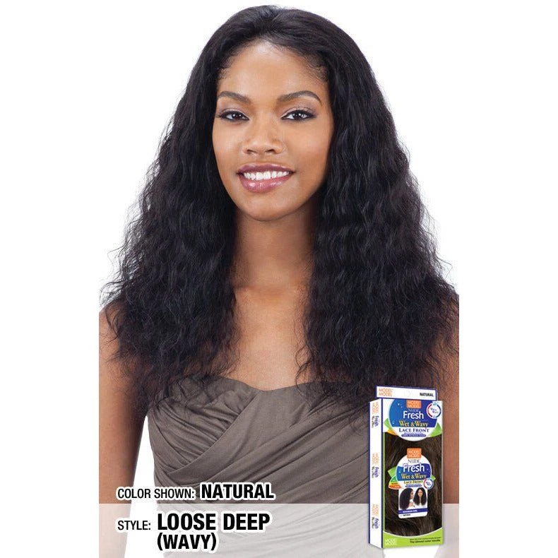 Model Model Nude Fresh Brazilian Human Hair Wet & Wavy Lace Front Wig – Loose Deep is a 20″ Wig that when wet it curls up but can also be straightened without losing its curl.
