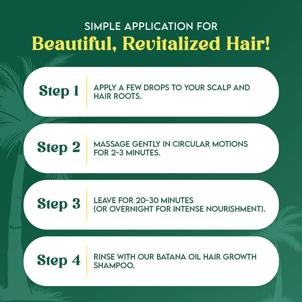 Apply a few drops directly to the scalp or target areas. Massage gently 2–3 times per week. Can also be used as a hot oil treatment.