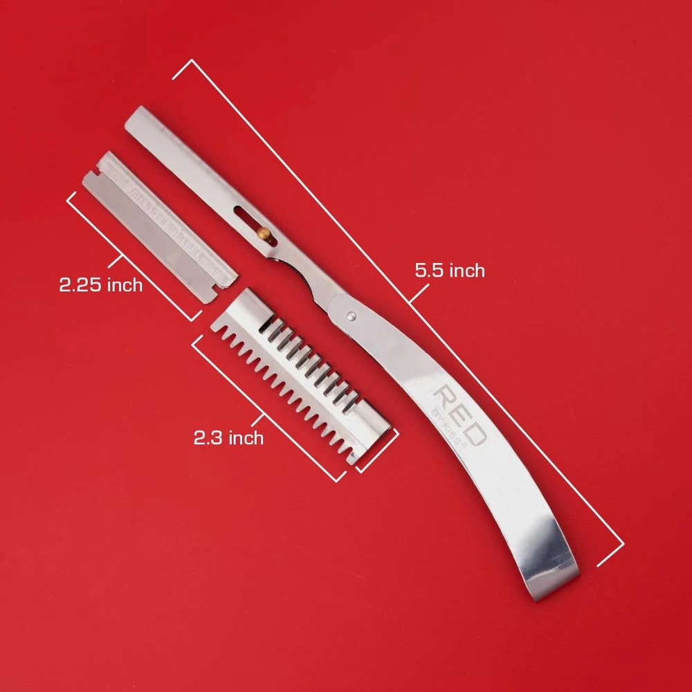 Shape, trim, and style with ease using the RED by Kiss Hair Shaper with Guides (HS12). This precision grooming tool includes a sharp blade and built-in guides, making it ideal for shaping hairlines, beards, sideburns, and eyebrows. Its ergonomic design ensures controlled handling for clean, defined results at home or on the go.