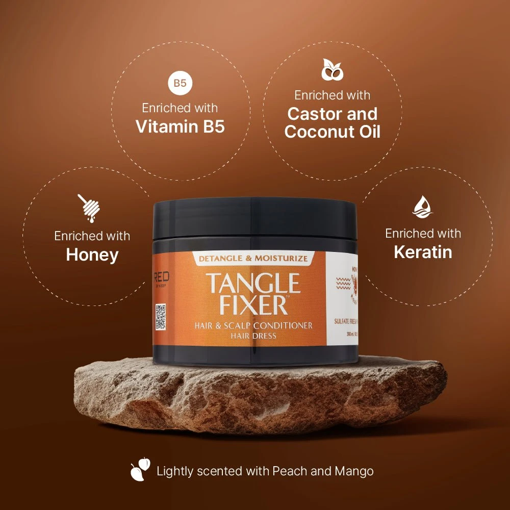 Bring your curls back to life with the Red by Kiss Tangle Fixer Collection—a complete care routine designed to detangle, hydrate, and nourish curly hair. Whether your curls are tight, loose, coiled, or wavy, each product in this line is crafted to enhance manageability, reduce frizz, and keep strands soft, shiny, and defined. Infused with moisture-rich ingredients, this collection works together to gently cleanse, deeply condition, and protect hair from dryness and breakage.