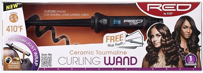 Its ergonomic design ensures comfortable handling, while the tapered barrel lets you customize curl size and bounce. Ideal for daily styling or special occasions, the Red by Kiss curling wand is a must-have tool for effortless, salon-quality curls at home.