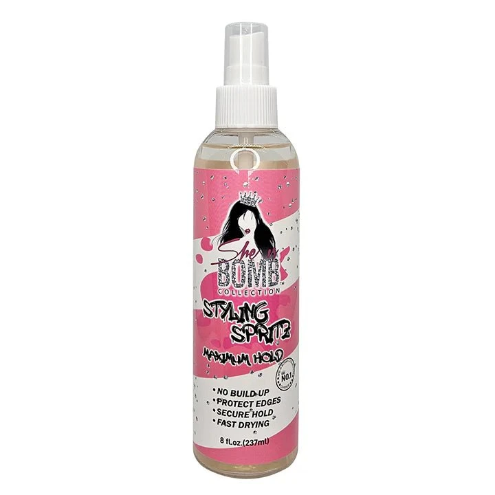 Level up your hair game with the She Is Bomb Fast Drying Spritz – the ultimate styling spray for long-lasting hold and shine. Specially formulated to tame flyaways and lay edges, this 8oz spritz delivers a firm hold without flaking or buildup. Perfect for sleek ponytails, molded styles, and sculpted looks that stay bomb all day. Suitable for all hair types, especially textured and natural styles.