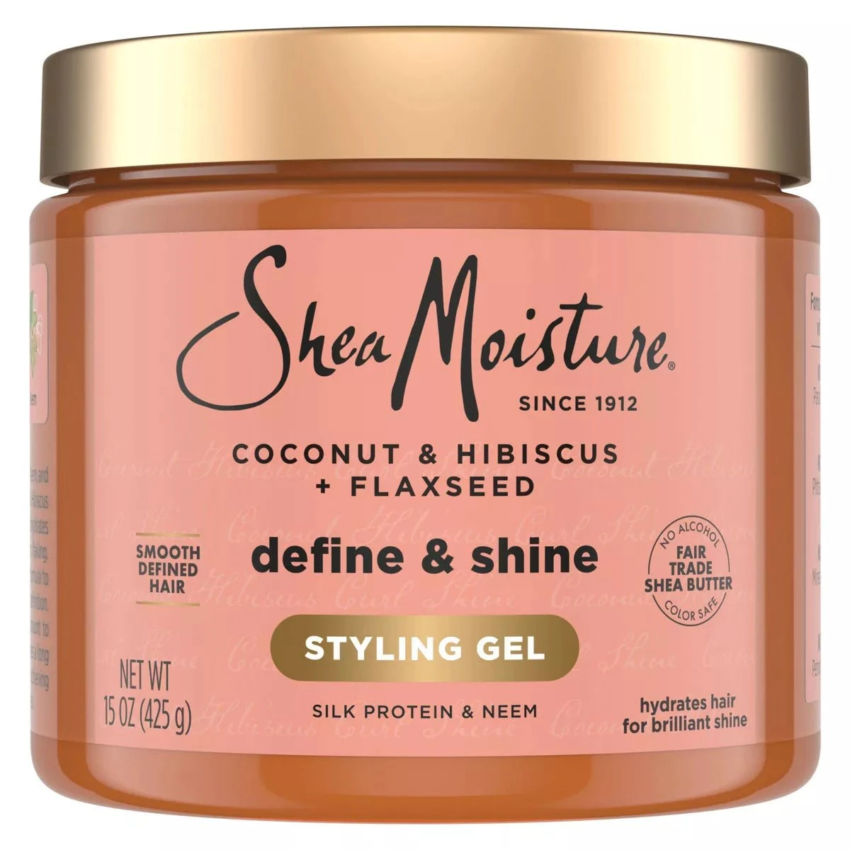 - STYLE THAT’S HERE TO STAY: SheaMoisture® Coconut & Hibiscus Define & Shine Styling Gel + Flaxseed hydrates & holds your style from morning to night. Upgrade to shiny, defined curls without the flakes.