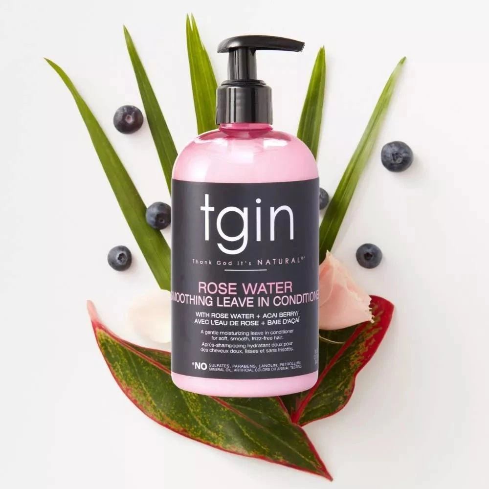 Enhance your hair care routine with the TGIN Rose Water Smoothing Leave-In Conditioner. Formulated with rose water, acai berry, and a blend of nourishing oils, this lightweight leave-in conditioner provides all-day moisture, adds shine, and tames frizz without weighing hair down. Ideal for curly, coily, and wavy hair types, it helps define curls and promotes a healthy-looking shine.