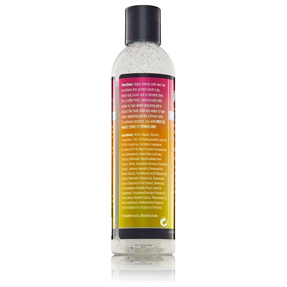 The Mane Choice Must Be Magic “Kazam Popping Curls” H2O Adjustable Holding Gel 8oz is designed for both hair and edges. This gel is formulated to adjust its strength with the power of water. Add more water to your hair during styling to minimize the hold (as more water dilutes the gel), OR use little to no water for supreme hold. Eliminates frizz, smooths the cuticle layer, and brings curls to life!